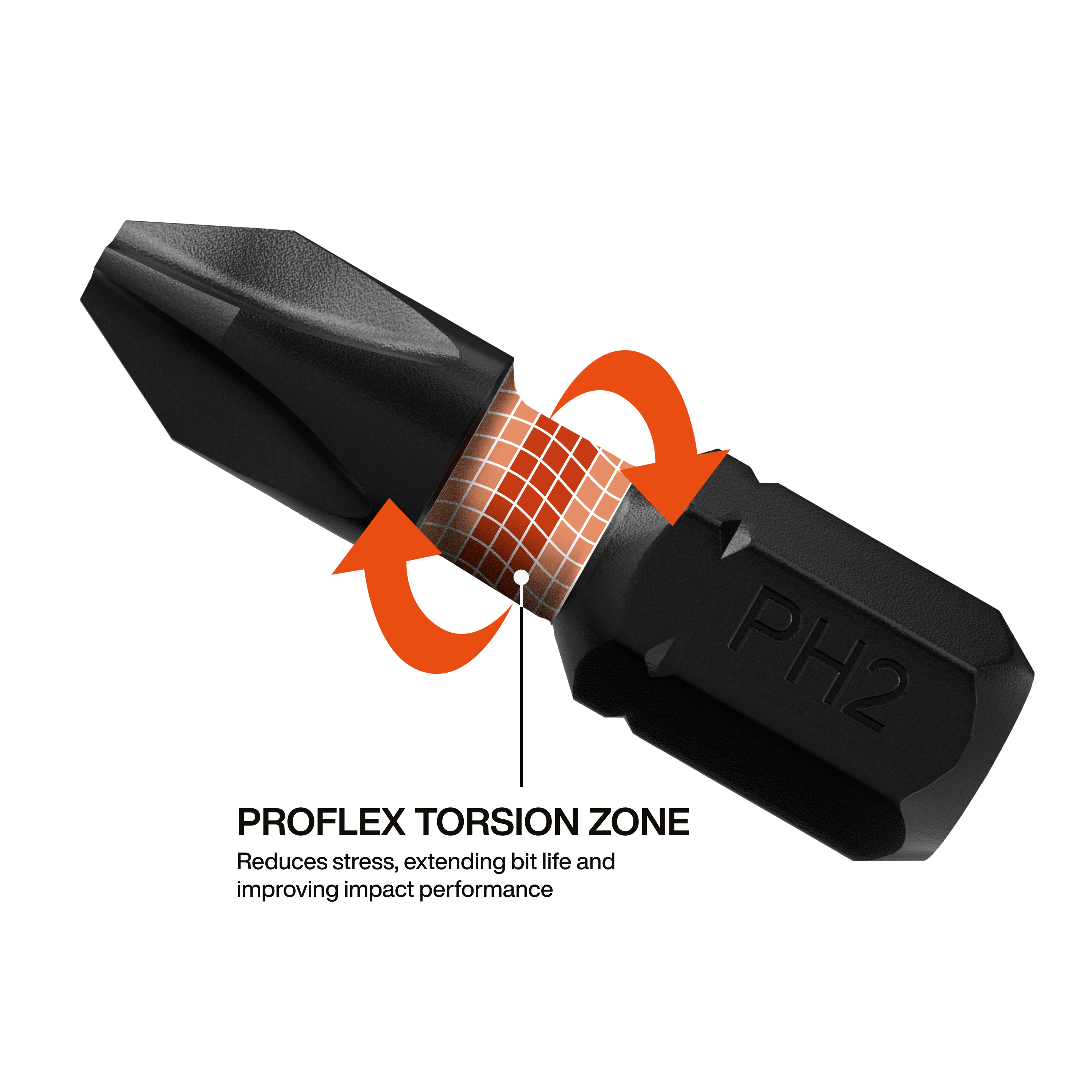• ProFlex torsion zone design to reduce stress, extending bit life and improving impact performance