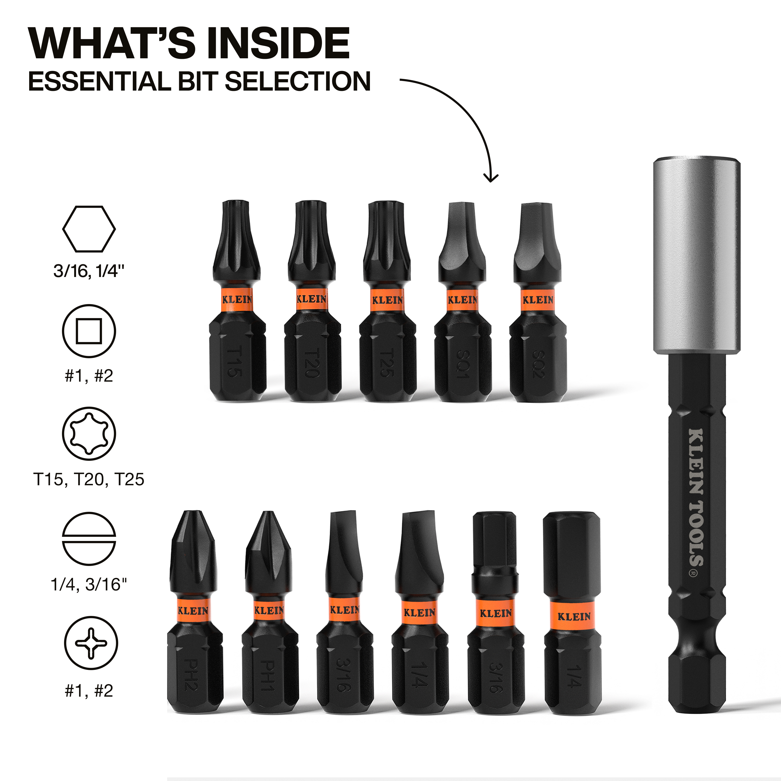 - 12-Piece impact-rated bit set includes eleven bits and one magnetic bit holder for most common screwdriving applications, including Phillips, Slotted, Square, and TORX® bits