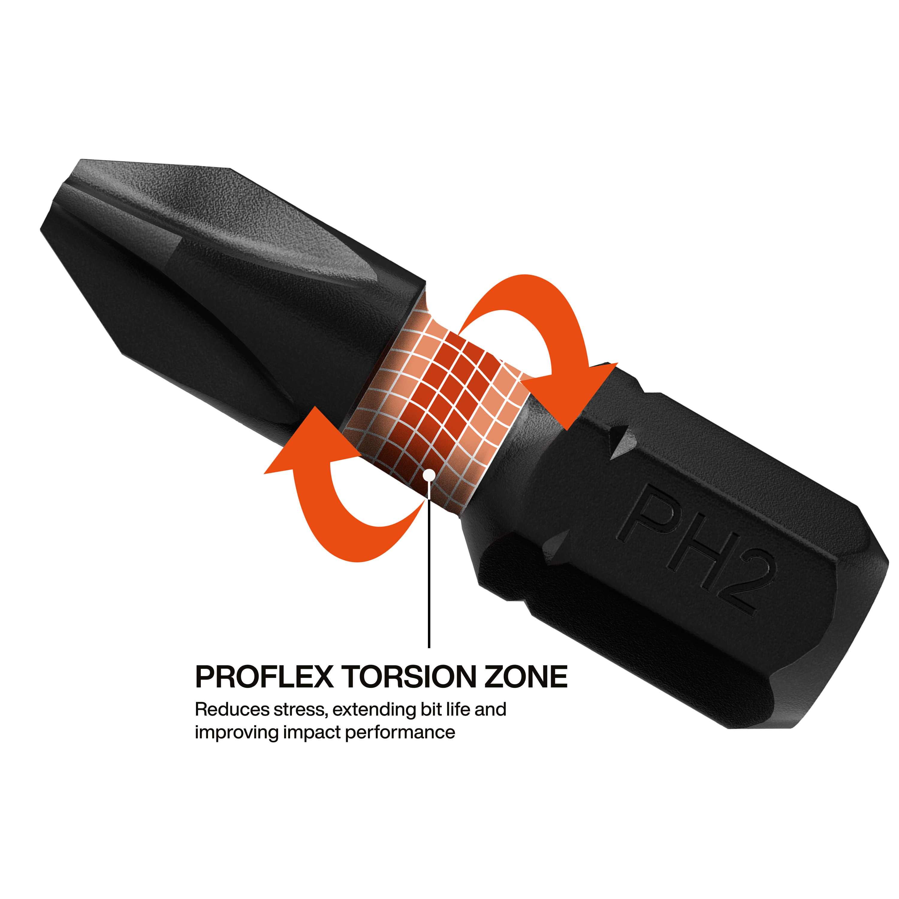 - ProFlex torsion zone design to reduce stress, extending bit life and improving impact performance