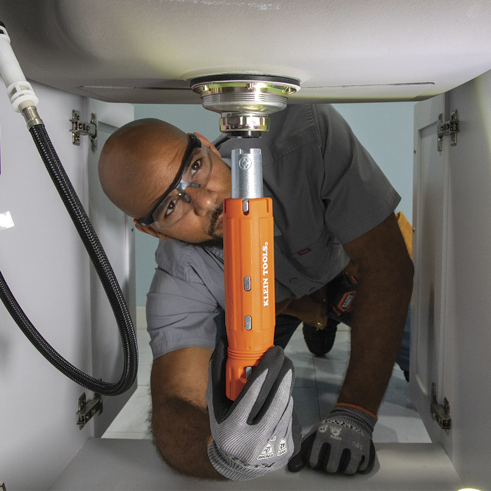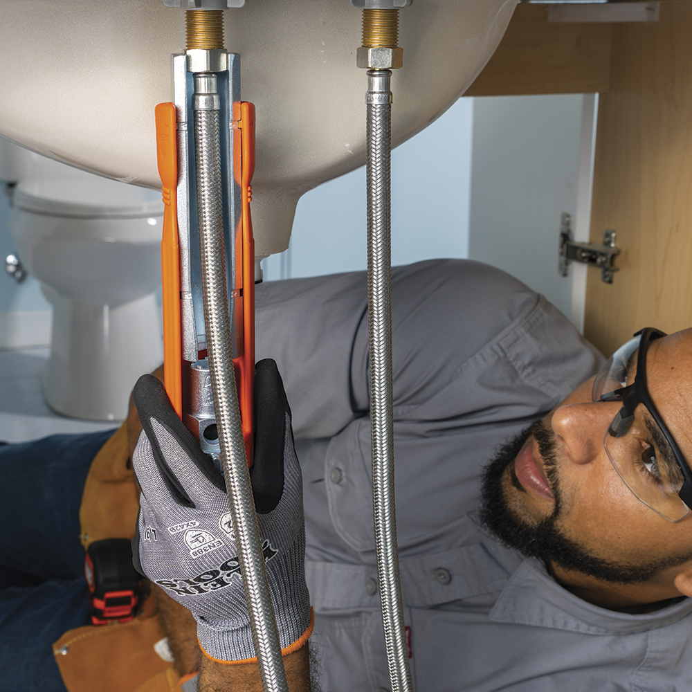 - Handle equipped with 2-, 3-, 4-, and 6-tab mount wrench for faucet and toilet supply installation
