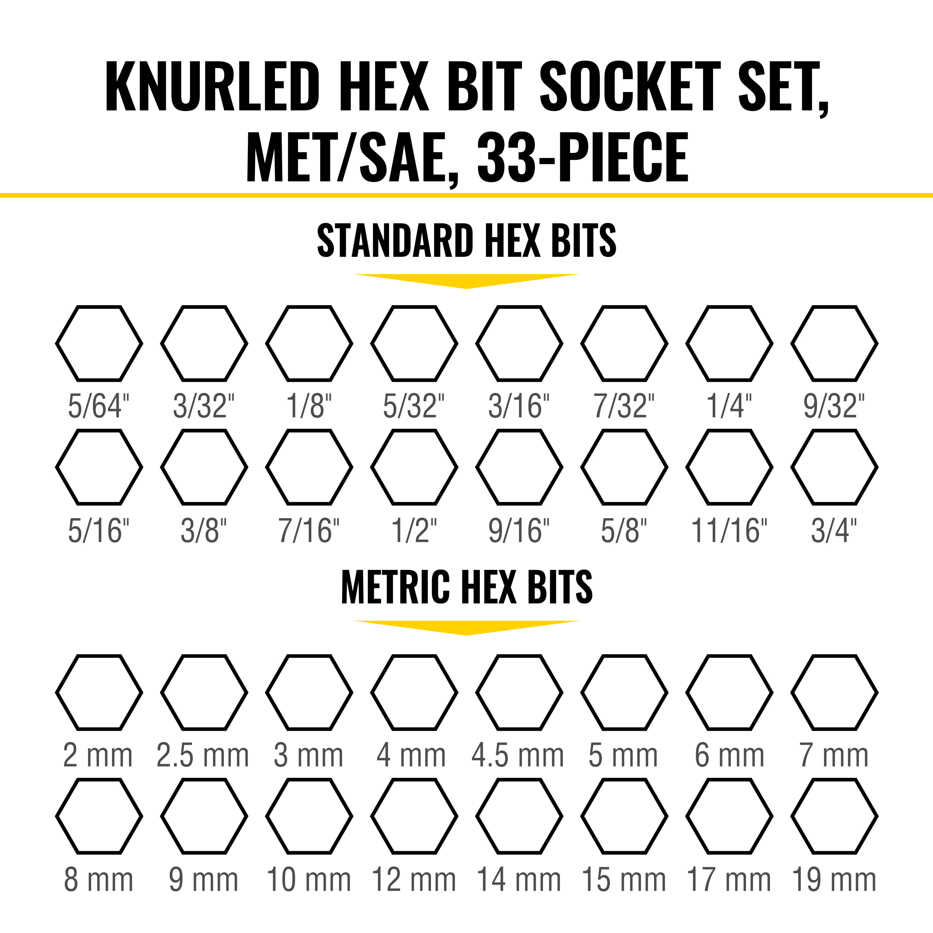 Knurled Hex Bit Socket Set, SAE and Metric, 32-Piece
