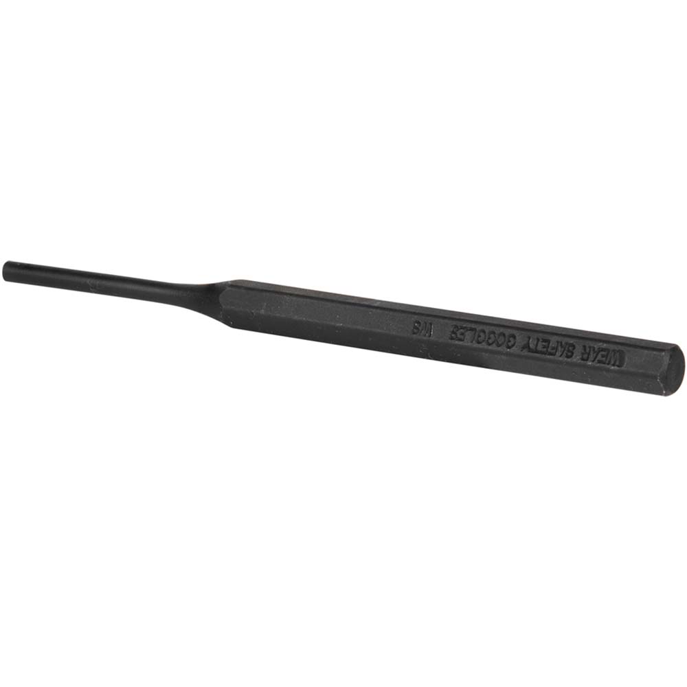 Pin Punch made of high-carbon steel for durability. Precision-ground shank and corrosion-resistant black finish. Heat-treated for added strength and hardness at working end. Point Diameter: 5/32 in. Overall Length: 5-1/4 in. Weight: 0.10 lb (0.05 kg).