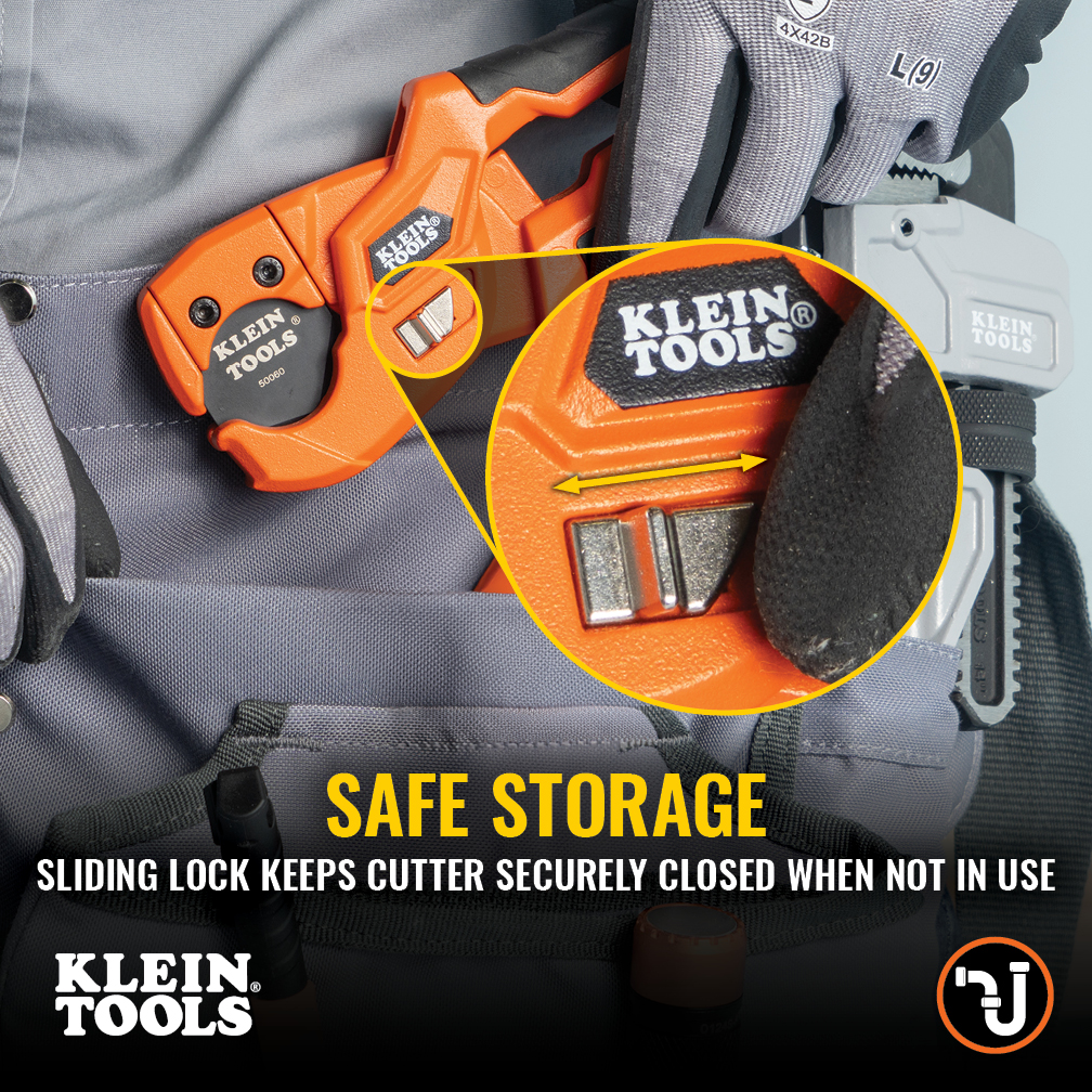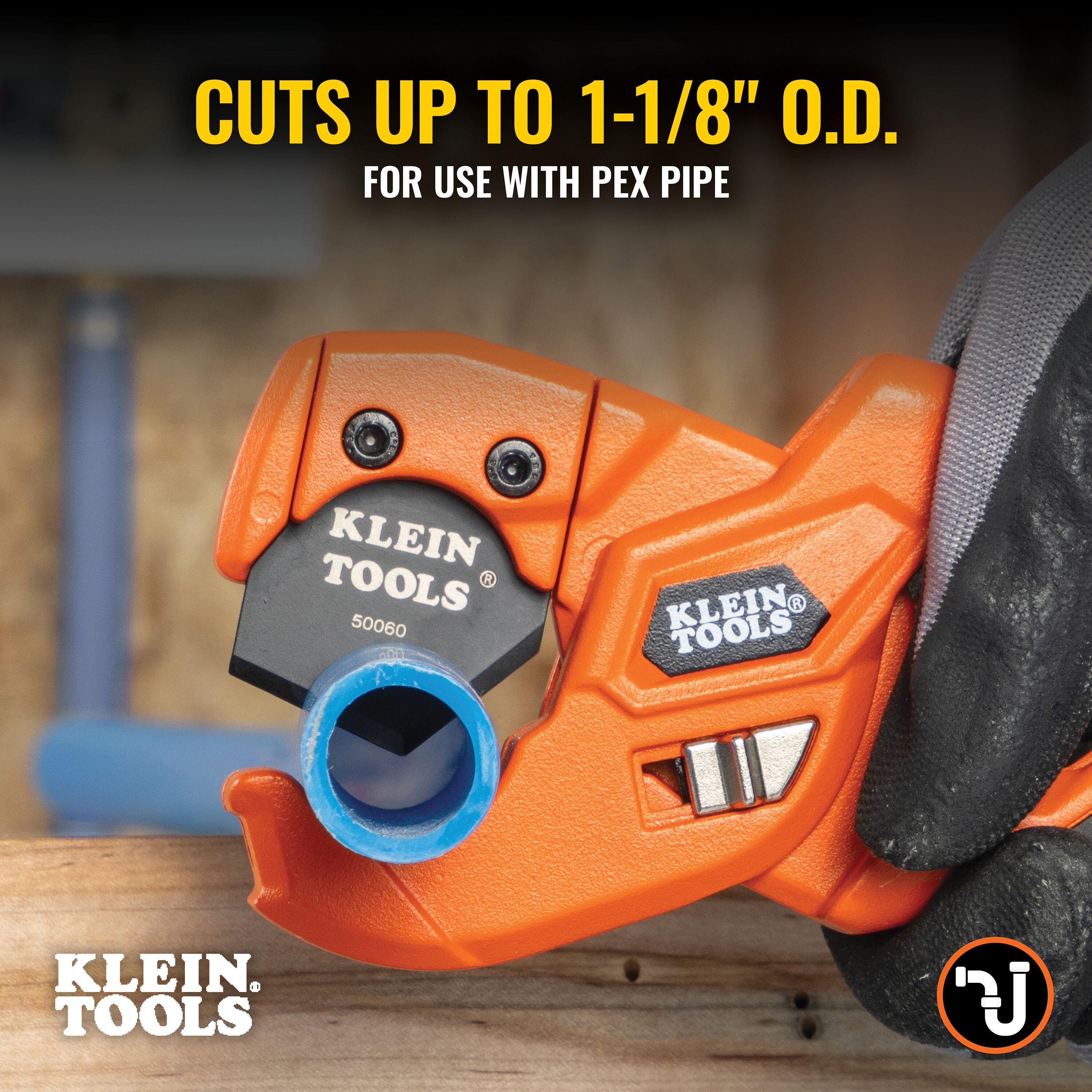 The Klein Tools PEX and Tubing Cutter has a cutting capacity of up to 1-Inch (25 mm) I.D. and is designed to cut schedule PEX pipes and most standard soft-shelled tubing. The lightweight, soft-molded handles ensure comfortable grip and offer increased leverage during use. The cutter is equipped with a sliding lock mechanism to keep securely closed and safely stored when not in use.