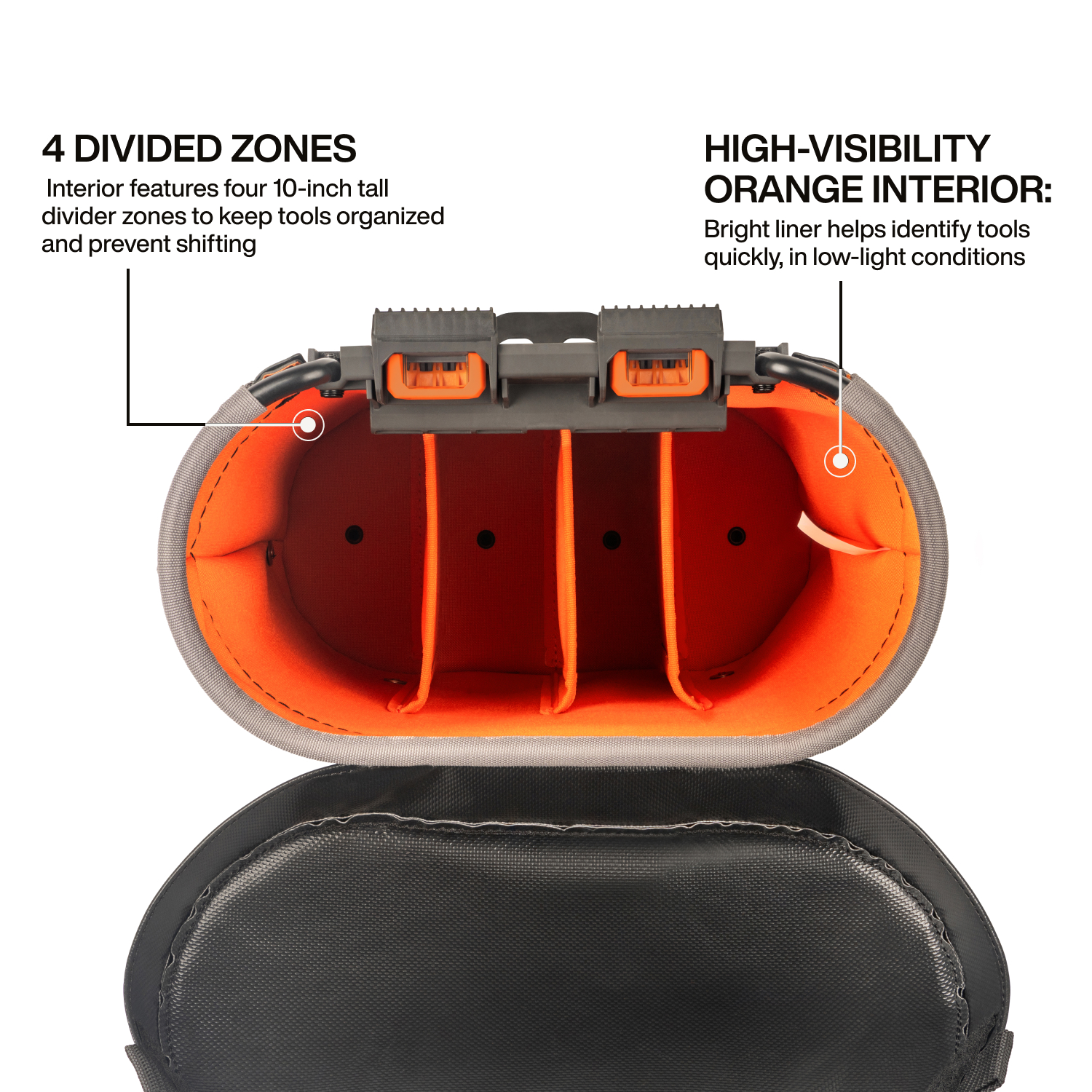 - High-visibility interior helps quickly identify tools