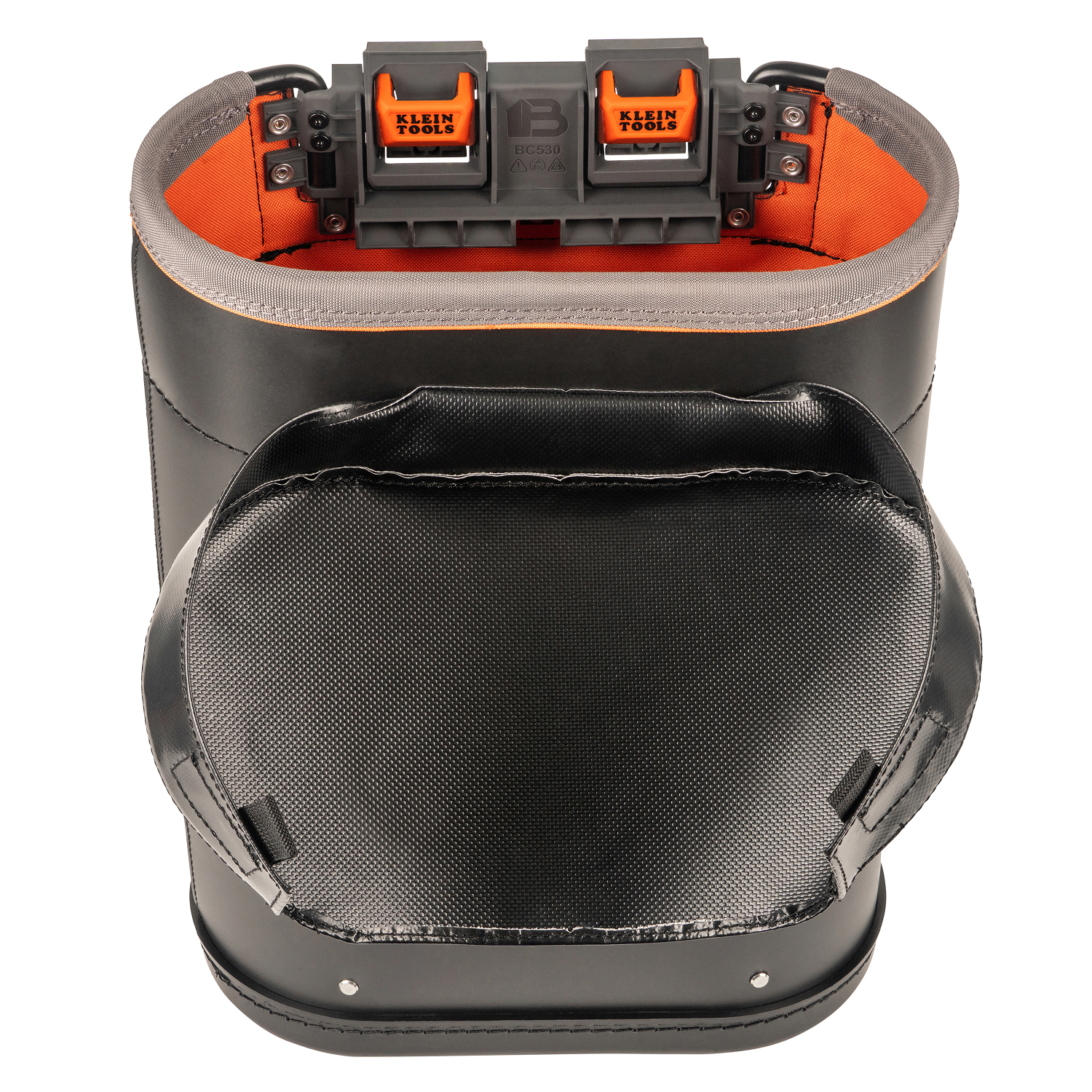 Klein Tools 20-Inch Deep Oval Bucket keeps heavy tools organized and supported. Three tall dividers prevent gear pile-up, while a rugged vinyl cover and high-visibility liner keep gear secure and easy to spot. Built tough and Bucket Work Center rail compatible, it's made to handle heavy-duty utility work.