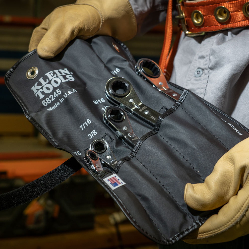 - Set of offset reversible ratchet box wrenches in heavy plastic roll-up pouch