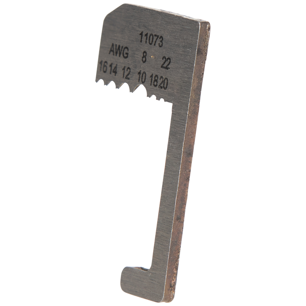 Replacement blades strip 8-22 AWG wire. Made of 1080 high carbon steel. Rust preventative applied. Wire stripper tool not included.