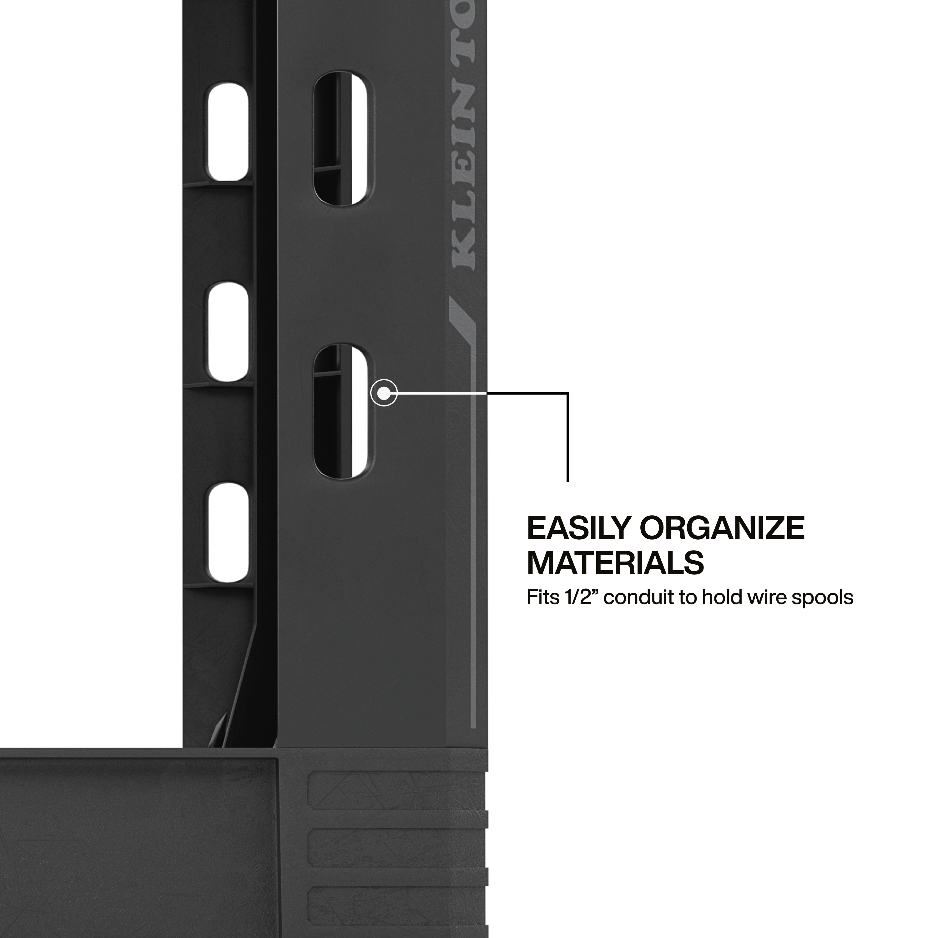 - Cart legs include holes for 1/2-Inch conduit to hold wire spools and materials during electrical work