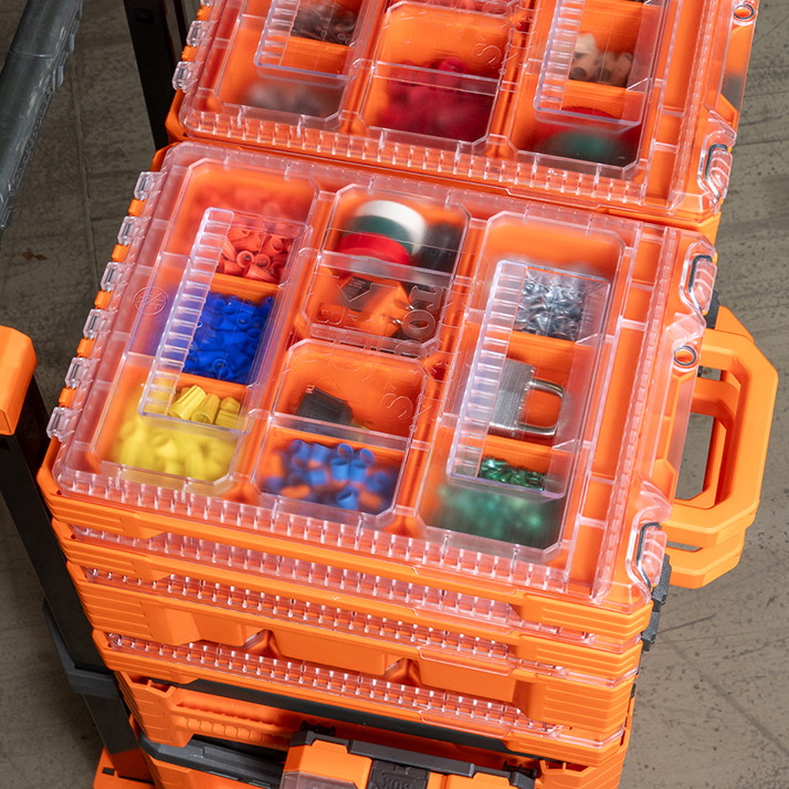 - Clear lid to easily view contents for enhanced efficiency and quick assessment of inventory