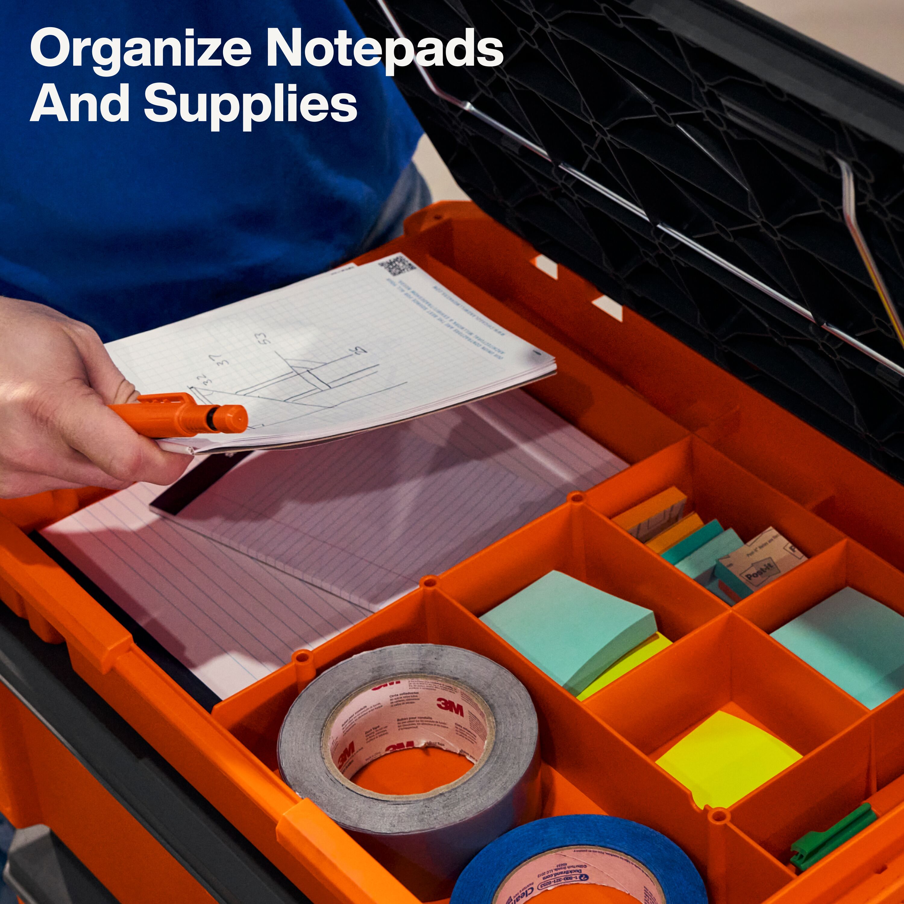 - Internal cubby layout specifically designed for notepads, label makers, and label rolls, keeping essentials organized and accessible