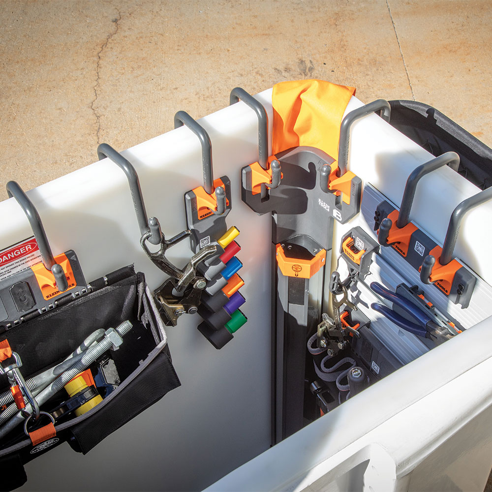 • S-Hook modules are hung horizontally across the rim of an aerial bucket to maximize space