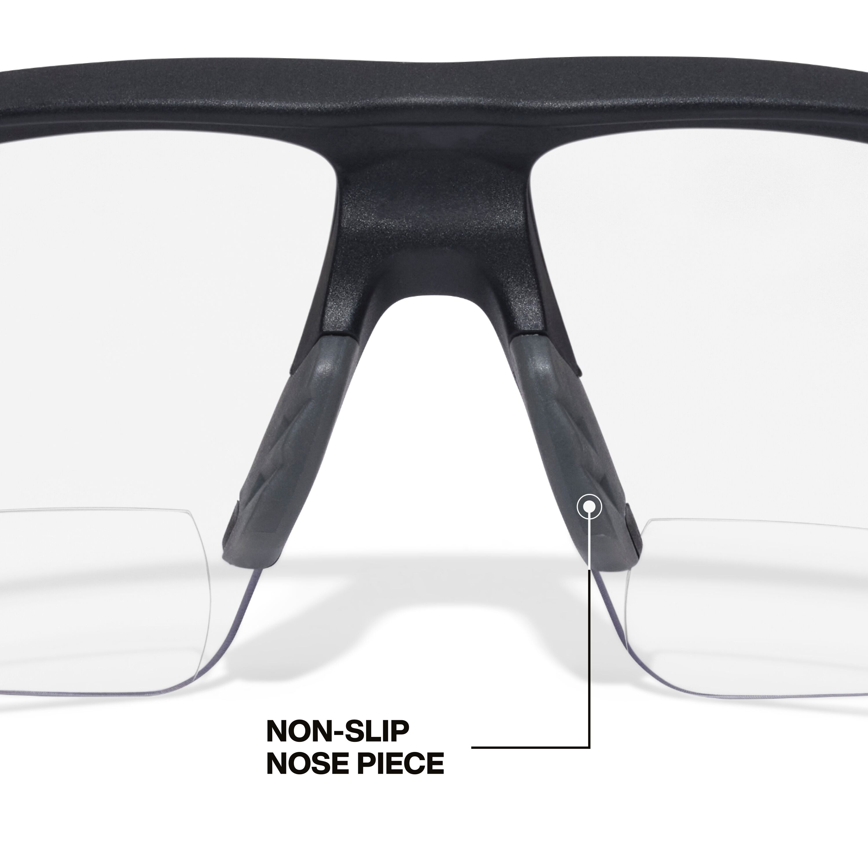 - Built-in +2.00 diopters for magnification, these bifocal safety glasses function as durable protective eyewear ideal for reading fine print and performing detail work