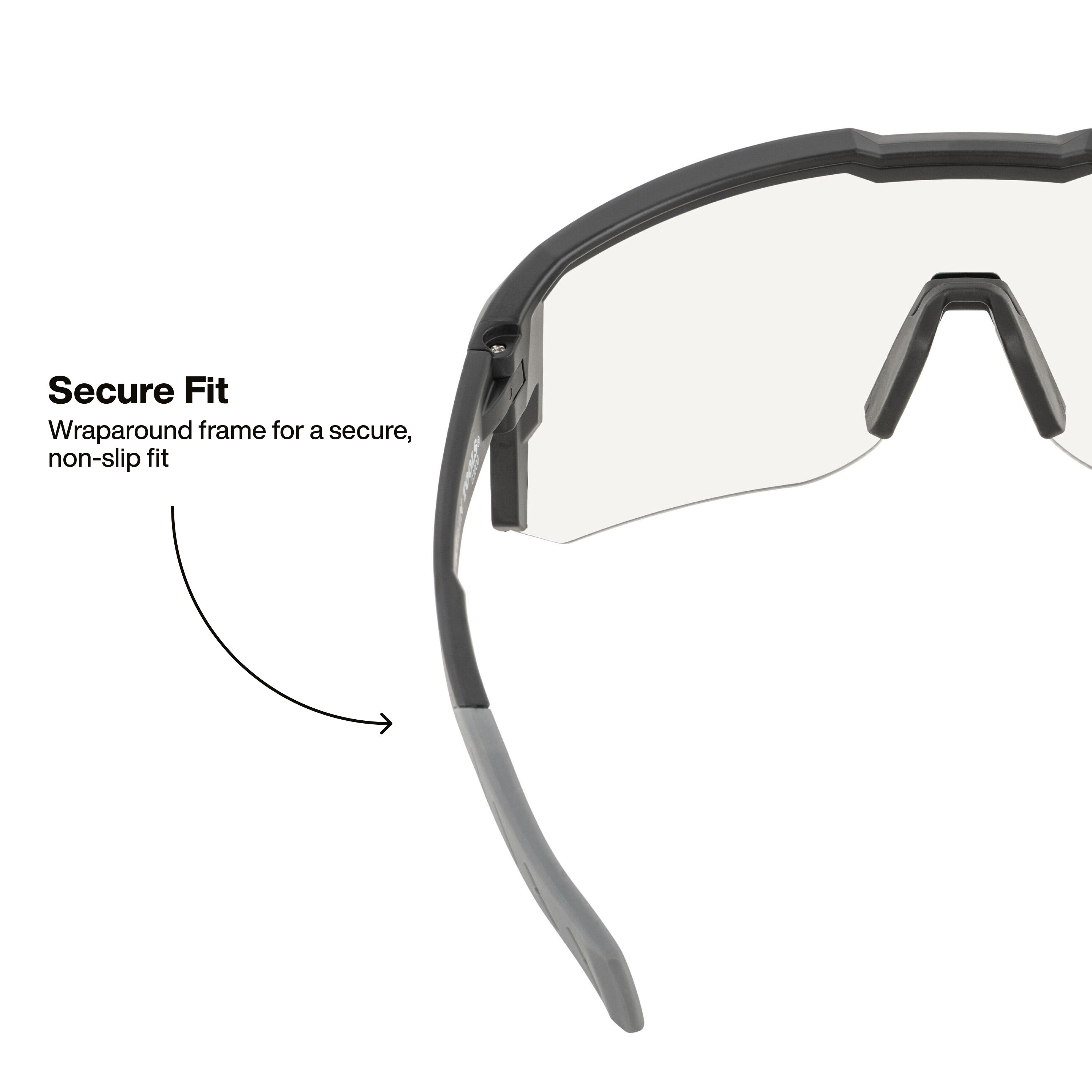 - Sleek, low-profile frame delivers a secure, lightweight fit for reliable eye protection