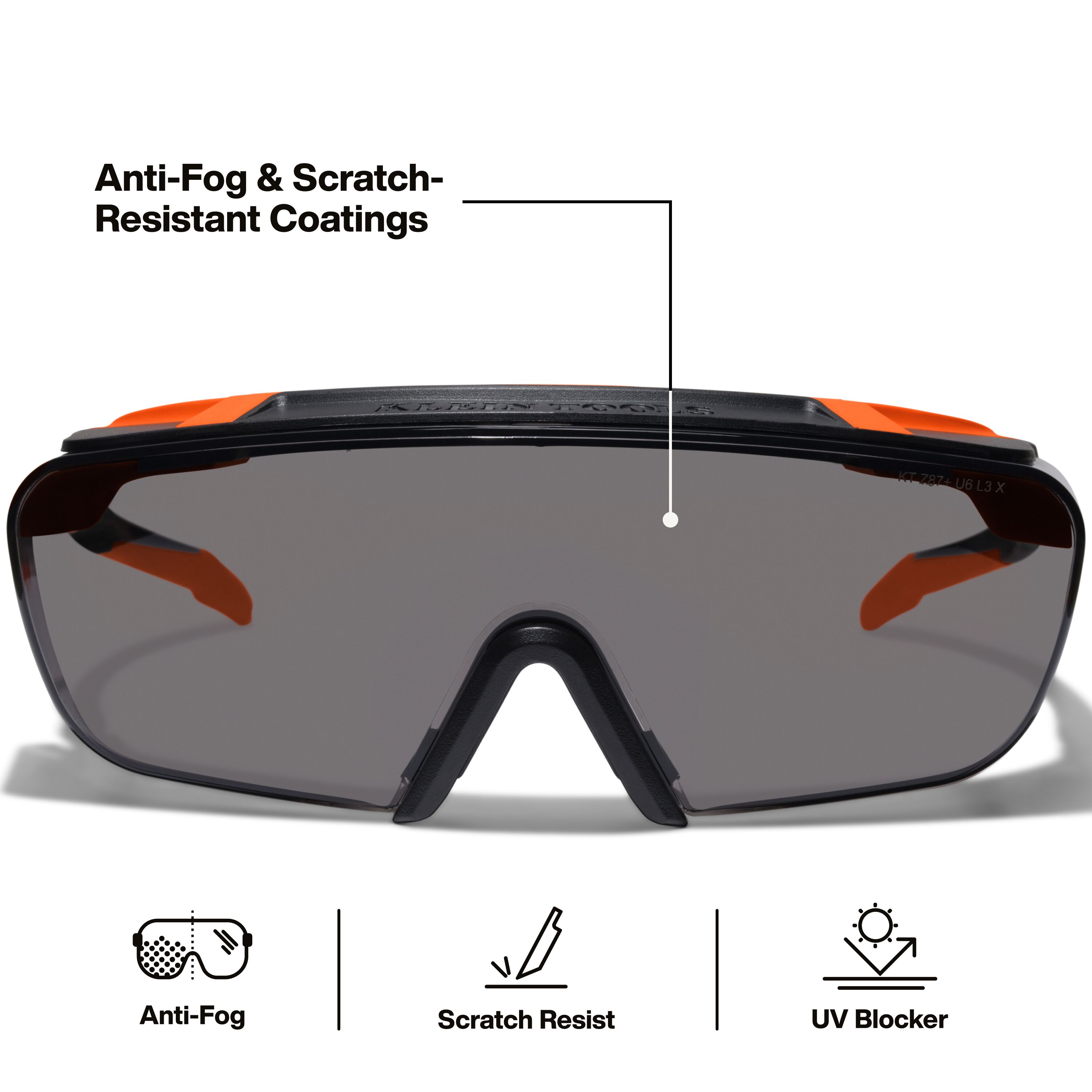 • Made to protect eyes on bright, demanding jobsites and meets both US and Canadian safety standards (ANSI Z87.1+ AND CSA Z94.3)