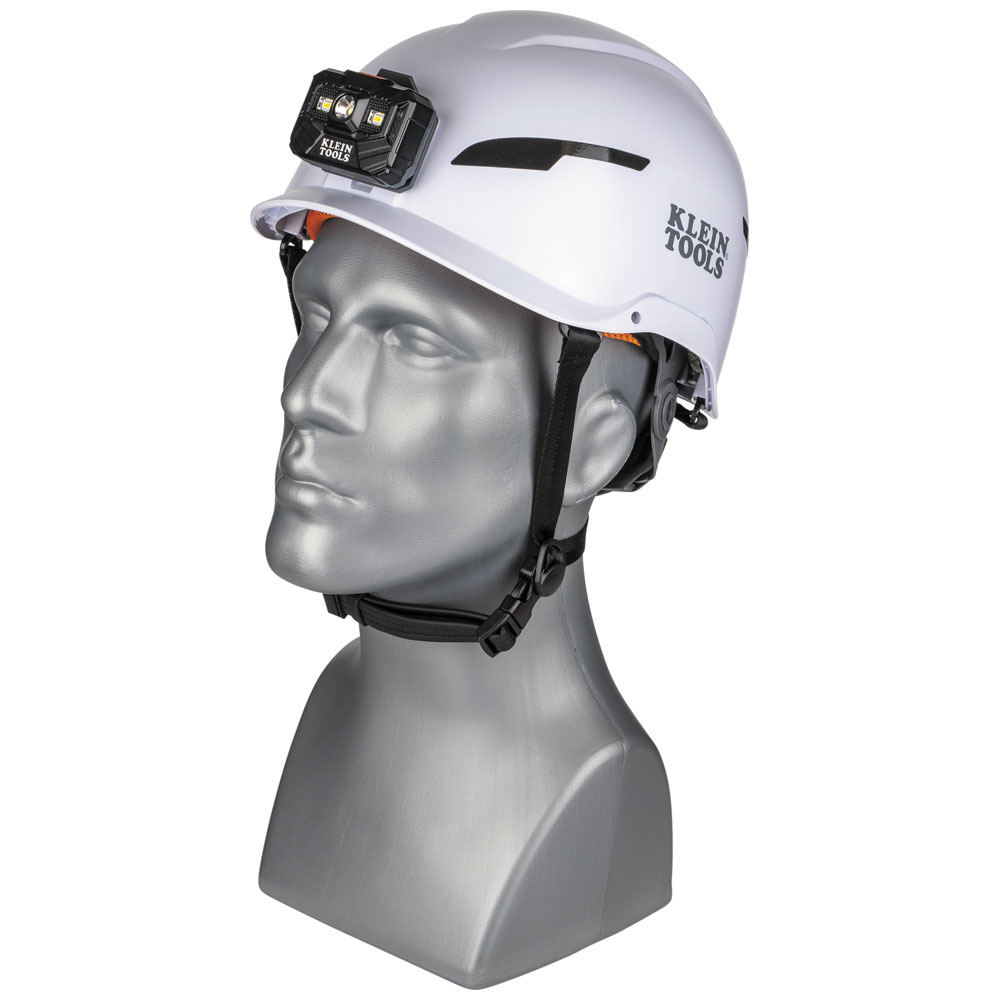 • Safety hard hat has patented accessory mounts on front and back to ensure Klein accessories attach securely and precisely; no straps or zip ties needed