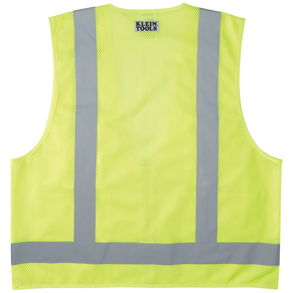 Klein Tools High-Visibility Safety Vest has retro-reflective material to enhance visibility. Mesh fabric on back provides breathability. This vest has a zippered front with interior and exterior pockets. Meets ANSI/ISEA 107-2015, Type R, Class 2 requirements.