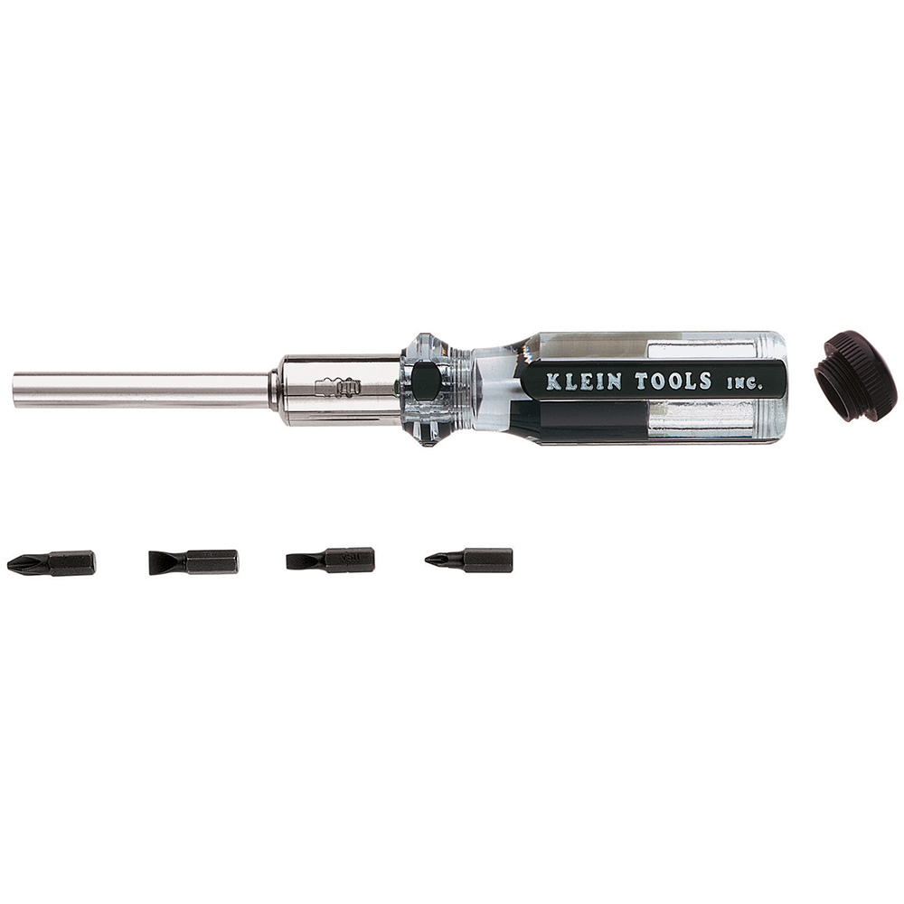 • Contains a unique 3-position ratcheting screwdriver plus an assortment of blade types and/or sizes.