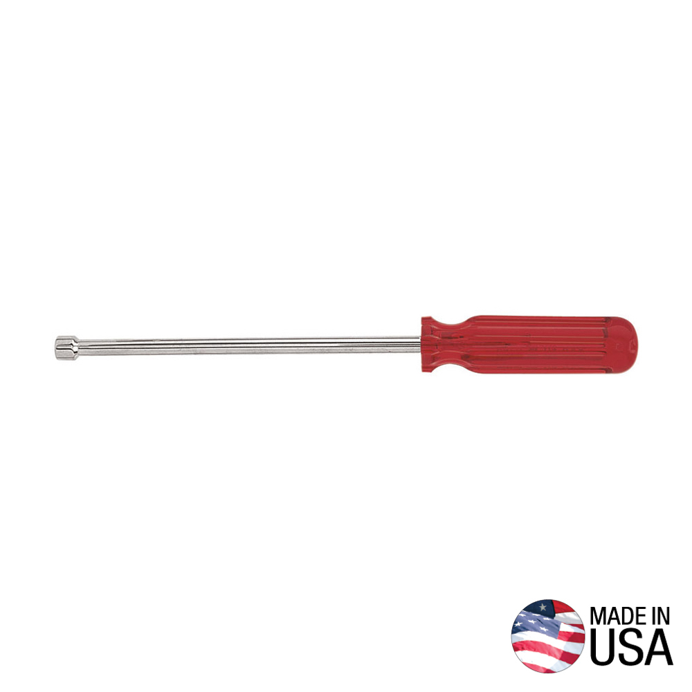 Get to those deeply recessed bolts and studs with Klein's 6'' (152 mm) nut driver. The hollow shaft fits over extra-long bolts and studs. The smooth Comfordome handle fits comfortably in the palm of the hand. The red handle helps to identify this tool quickly.