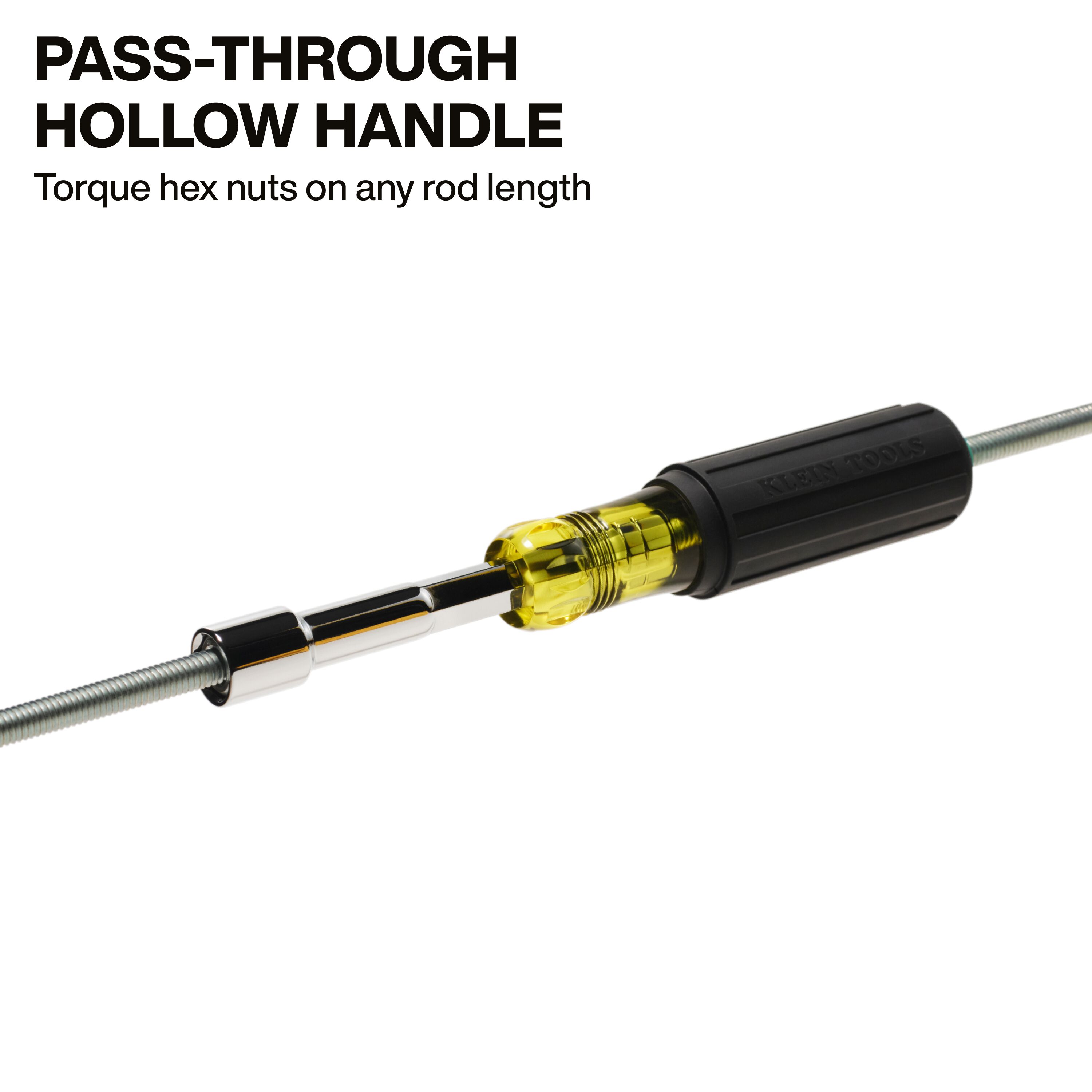 • Pass-through handle and full hollow shaft design allow for effortless torquing of hex nuts onto threaded rods of any length