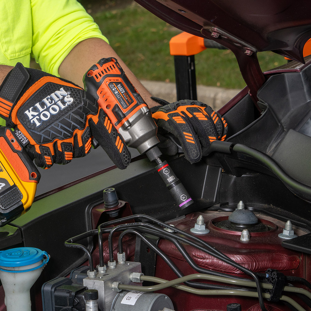 • Klein KNECT™ (M) specialized square drive adapter compatible with Klein Tools Pass Through Socket Wrench (Cat. No. 65400) and any 3/8-Inch square drive ratchet