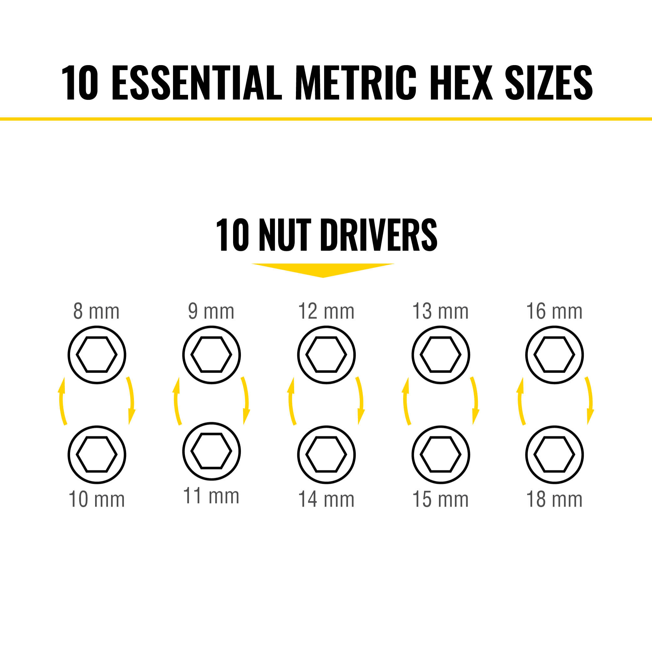 8, 9, 10, 11, 12, 13, 14, 15, 16, 18 mm