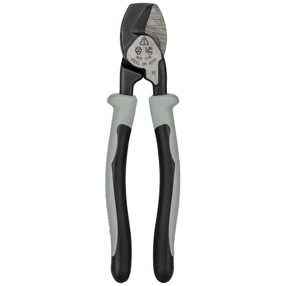 Klein Tools' Journeyman™ Compact Cable Cutter was designed to cut up to 1/0 AWG aluminum and copper wire. Journeyman™ handles provide a better grip without sacrificing tool strength and durability. Smooth action with the hot-riveted joint.