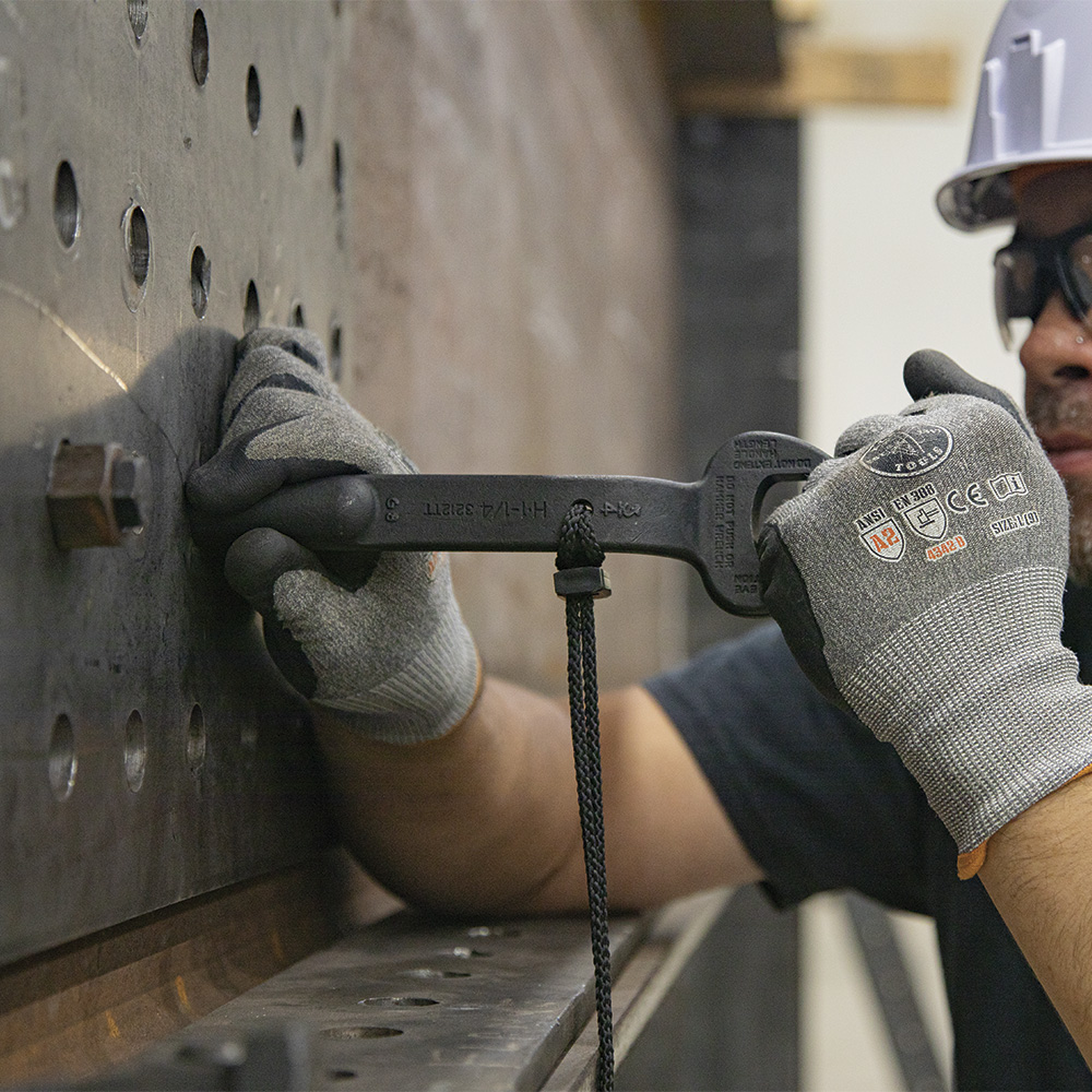 Forged from select alloy steel, Klein Tools' 1-1/4-Inch Nominal Opening Spud Wrench is designed to withstand high-leverage and heavy loads. For use with 3/4-Inch bolts and U.S. heavy nut types, the extra heavy-duty head area provides maximum strength and durability. Plus, the continuous taper of the handle makes it easy to line up bolt holes. Includes a built-in hole so tool can be tethered when working at height.