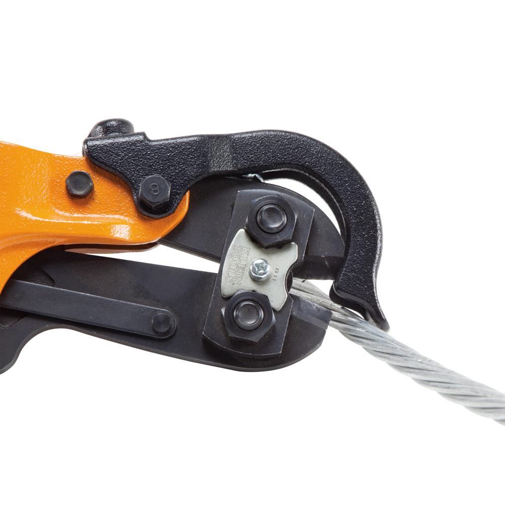 - Spring-loaded retention hook keeps cable/bolt between cutting blades