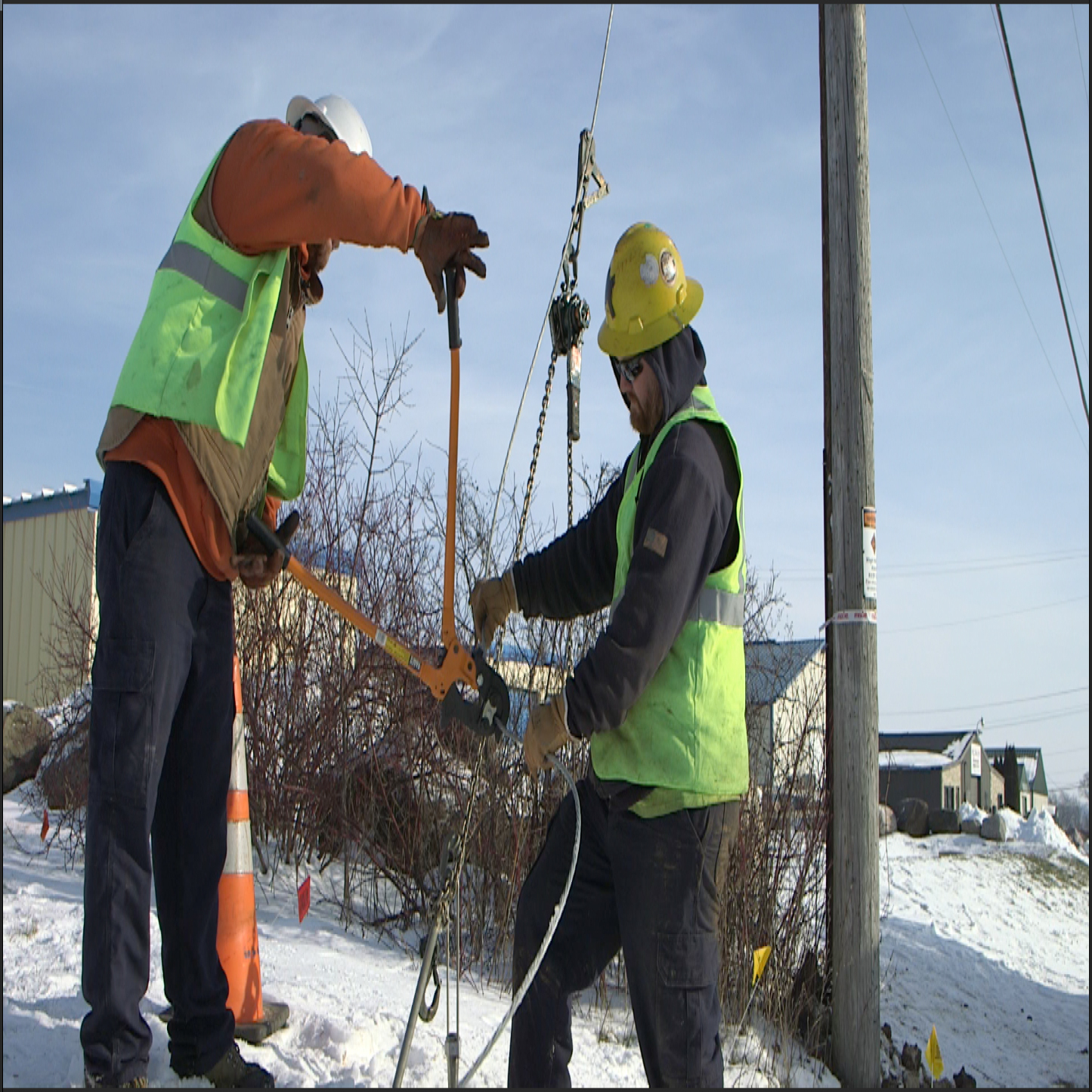 - Easily slices through guy strand: 1/2-Inch utility-grade and 3/8-Inch EHS