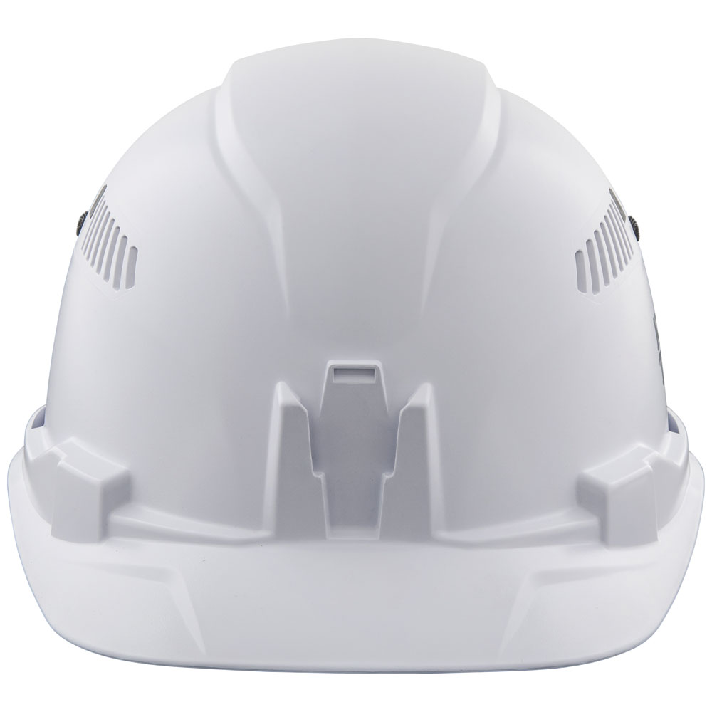 - Safety hard hat has patented accessory mounts on front and back ensure optional Klein Headlamps attach securely and precisely, every time — no straps or zip ties needed!