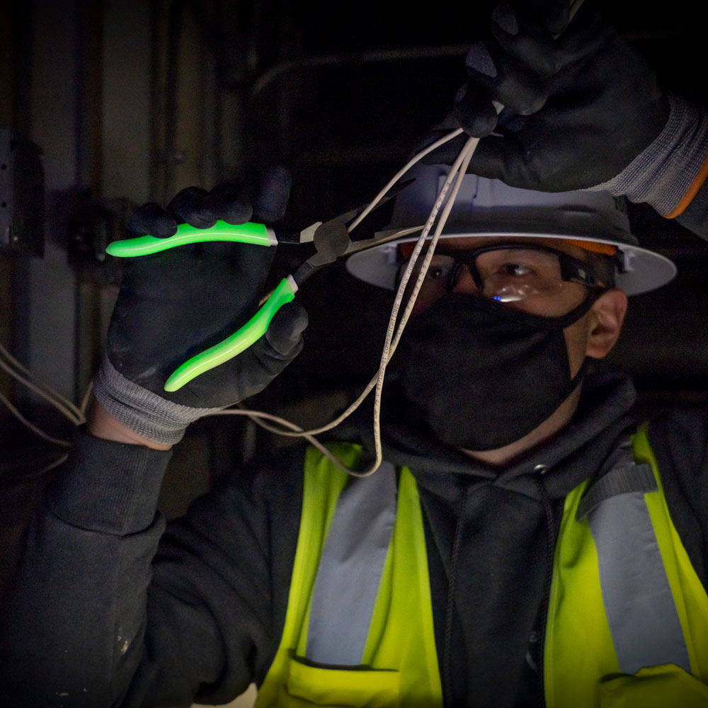 No need to worry about losing your tools in the dark again with Klein Tools' High-Visibility Long-Nose Side-Cutting Pliers. The Glow-in-the-Dark grips can stay illuminated for up to 30 minutes! Plus, they charge in natural or artificial lighting.