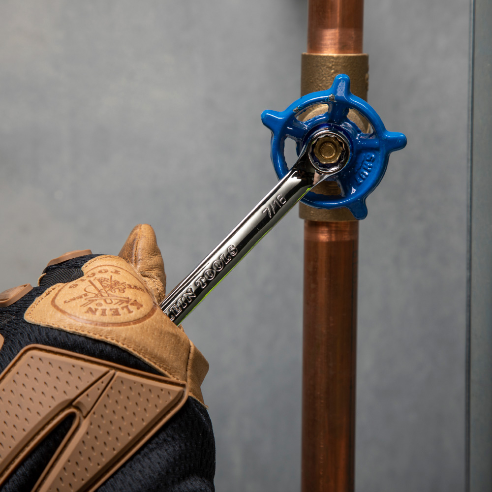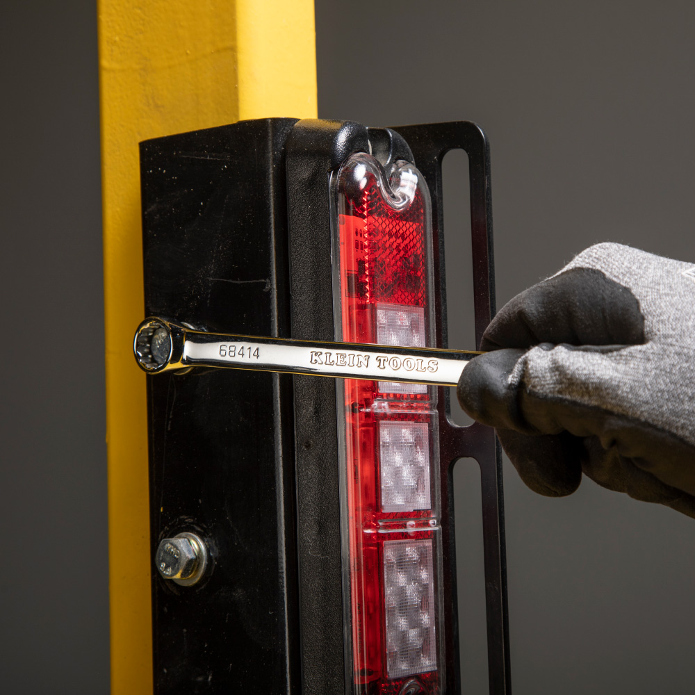 This Klein Tools 7-Piece Combination Wrench Set includes seven of the most popular wrench sizes. Each wrench has an open-end and a box wrench, both with the same size opening. This set also comes with a pouch that has marked pockets for each wrench and hanging grommets.