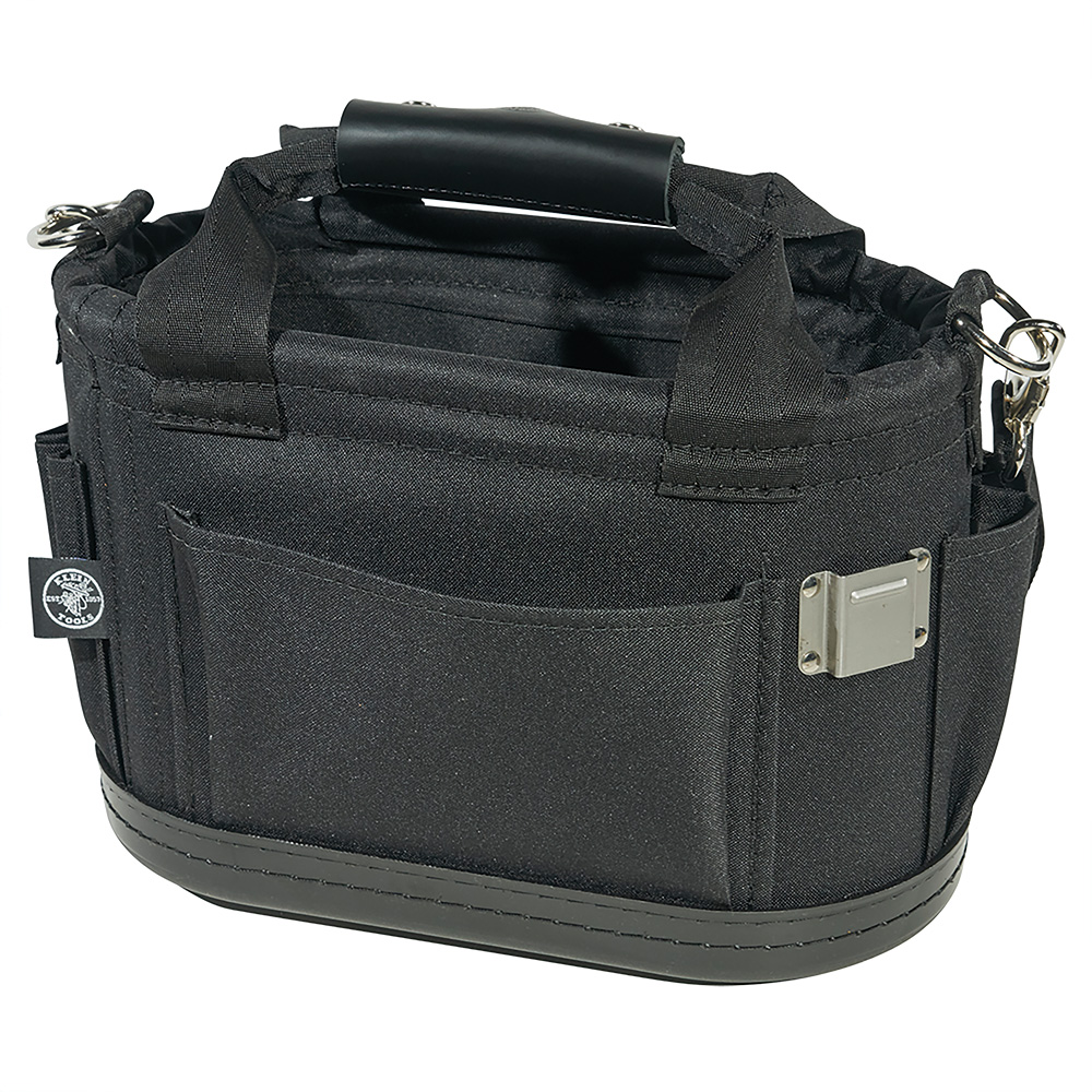 This Klein Tools Tool Tote is designed for the professional tradesman and the serious do-it-yourselfer. This tote has 17 pockets, plus a large interior compartment that easily accommodates a wide assortment of tools and supplies. It's constructed of rugged 600 x 300 denier polyester to resist wear and tear on the jobsite.