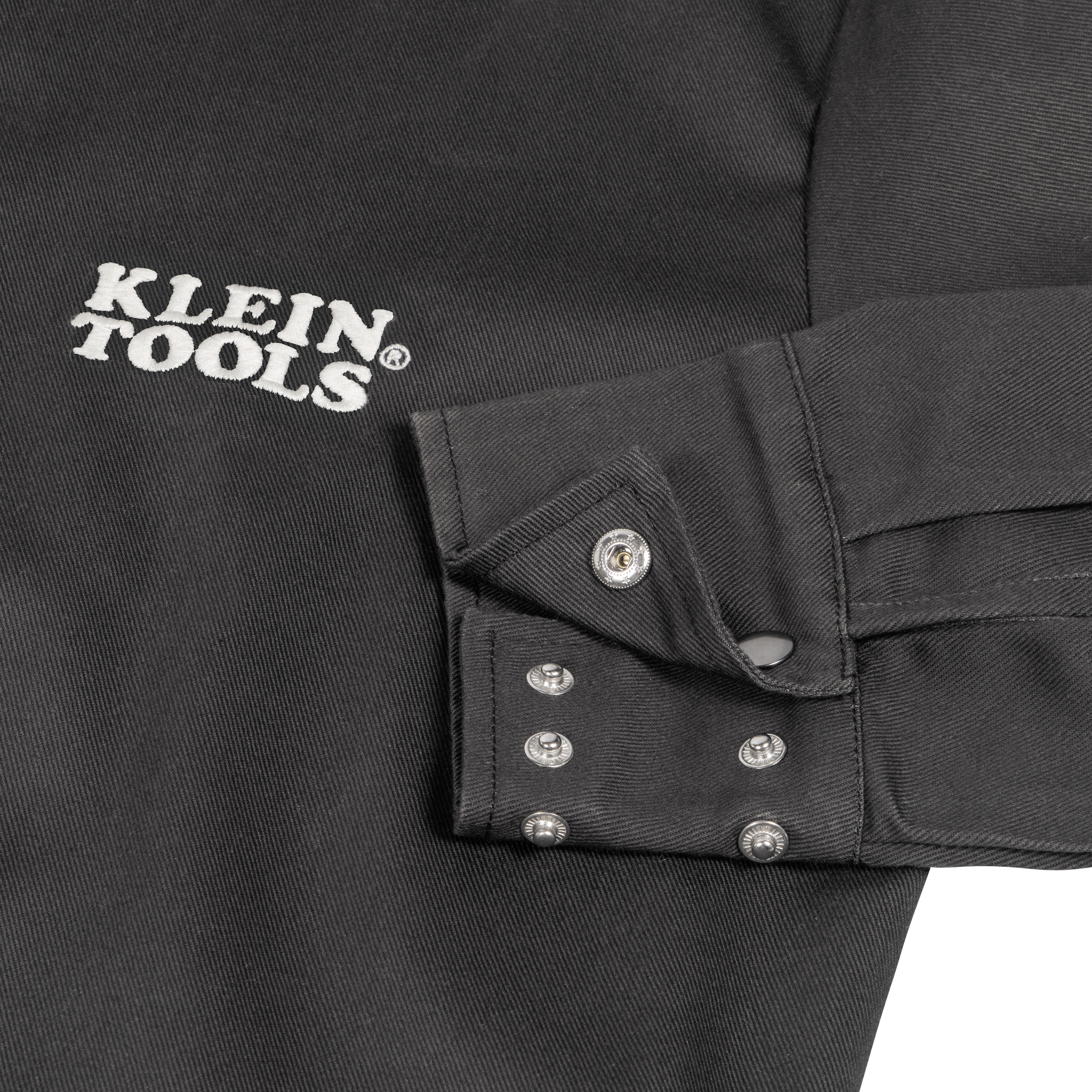 Klein Tools' Long Sleeve Welding Jacket is made from Flame-Resistant (FR) cotton twill, which is ASTM F1506 Sec. 7.6 compliant. The back of the jacket features breathable FR mesh for added air flow. Adjustable metal snap-button cuffs and collar offer the end user a proper fit and protection from sparks and weld spatter. The jacket includes interior pockets.