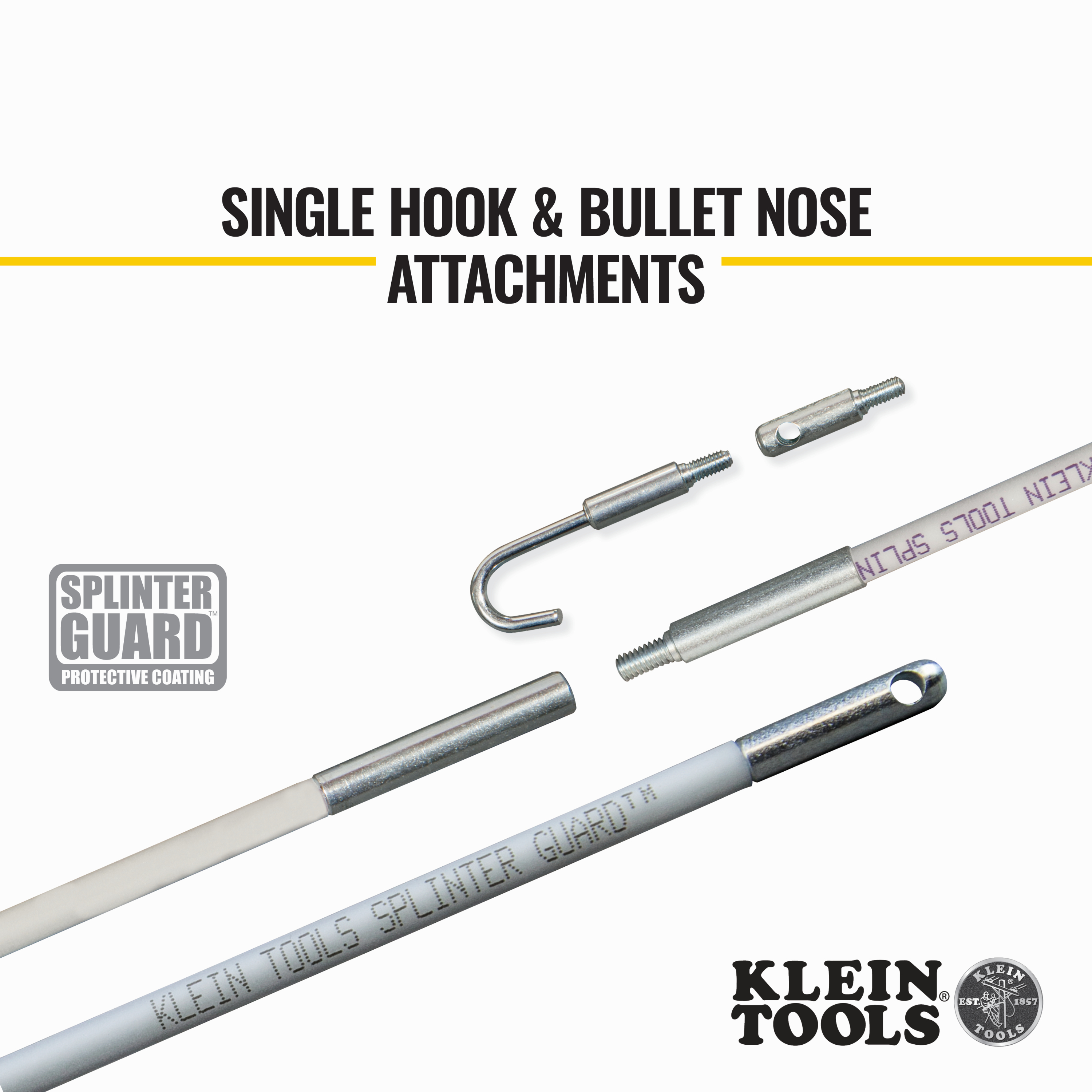- Bullet nose and hook attachments to attach and grab wires