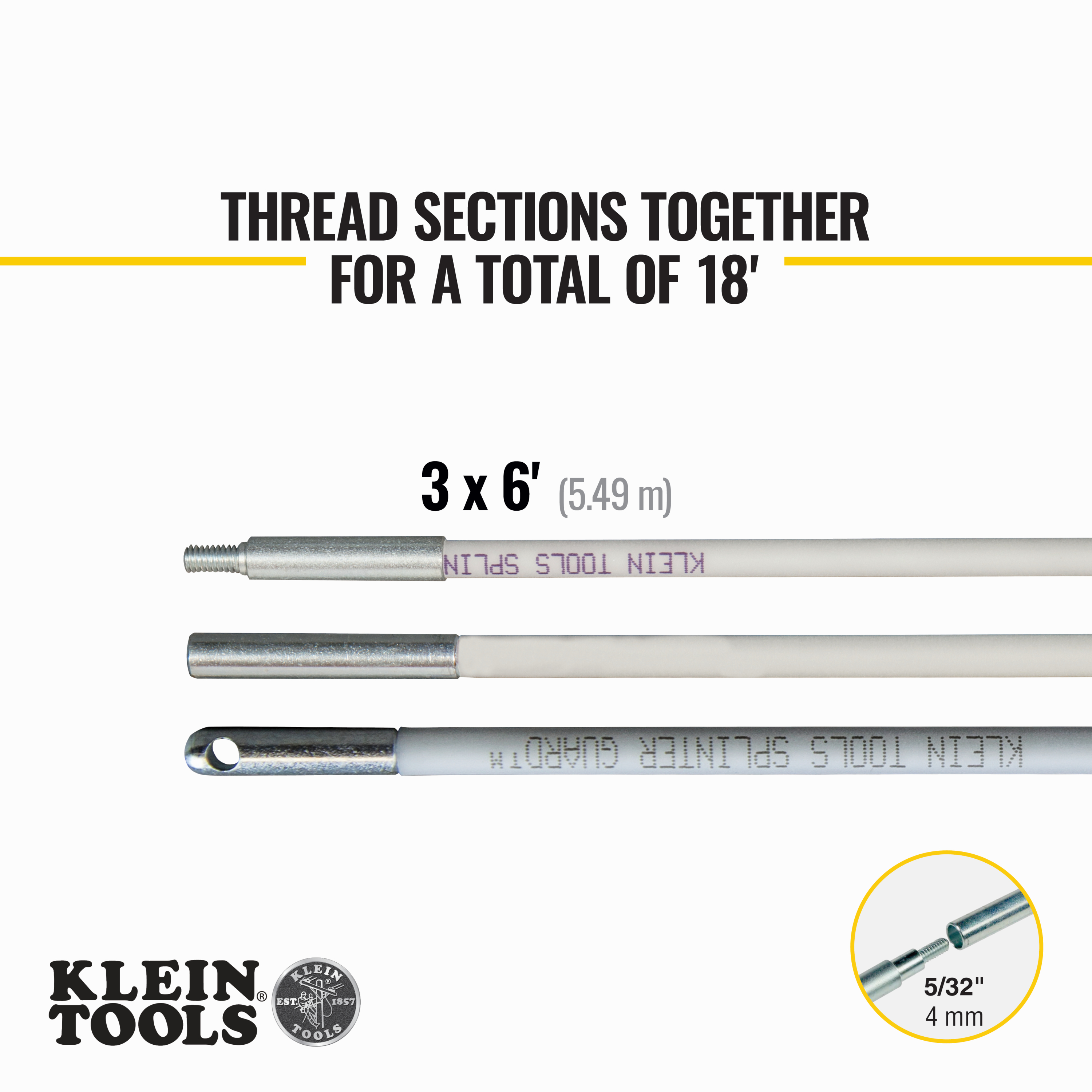 - Three 5/32-Inch (4 mm) diameter x 6-foot (1.83 m) glow rods assemble to a full 18-feet (5.49 m)