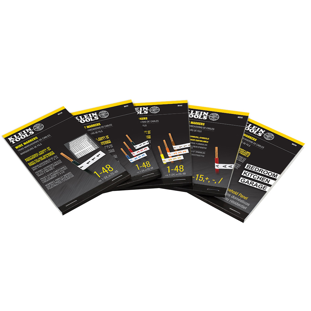 Label wires quickly and easily with Klein Tools' new preprinted panel and wire markers. These markers are made of durable vinyl coated cloth and contain larger print to make them easier to read. Klein is now offering marker books in five different configurations to meet every labeling need.