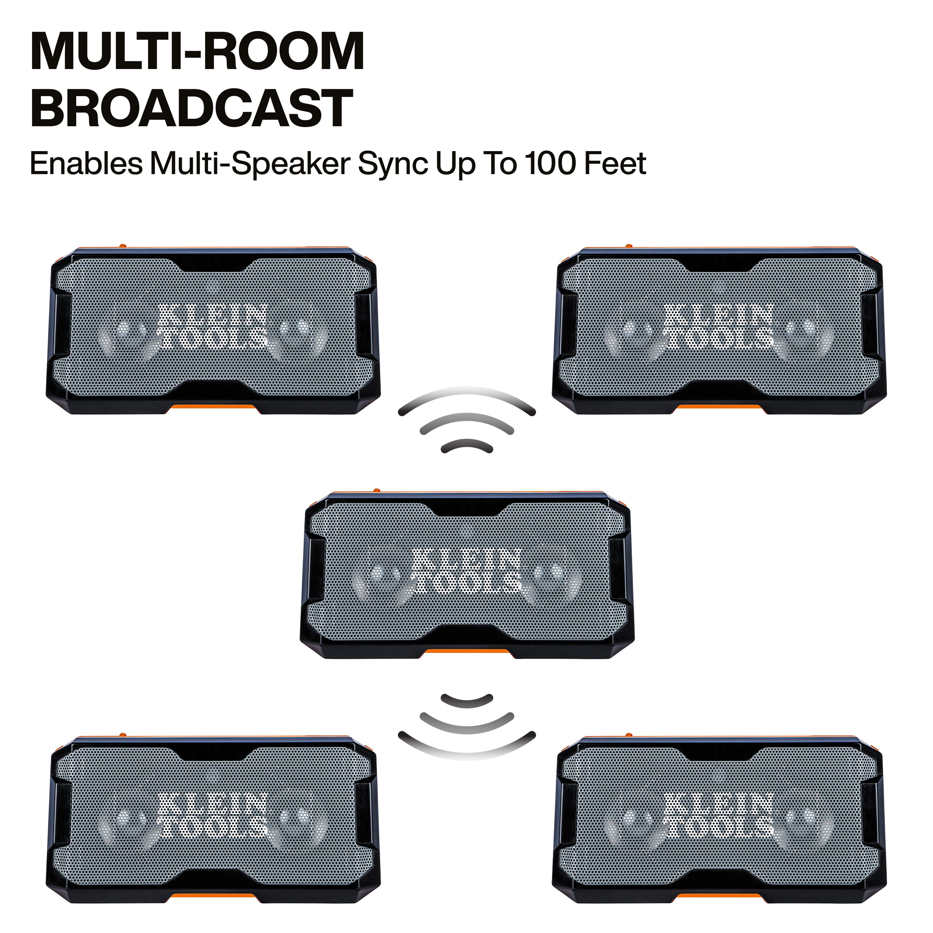 - Reach every corner of the jobsite or house by linking up to five MODbox™ speakers