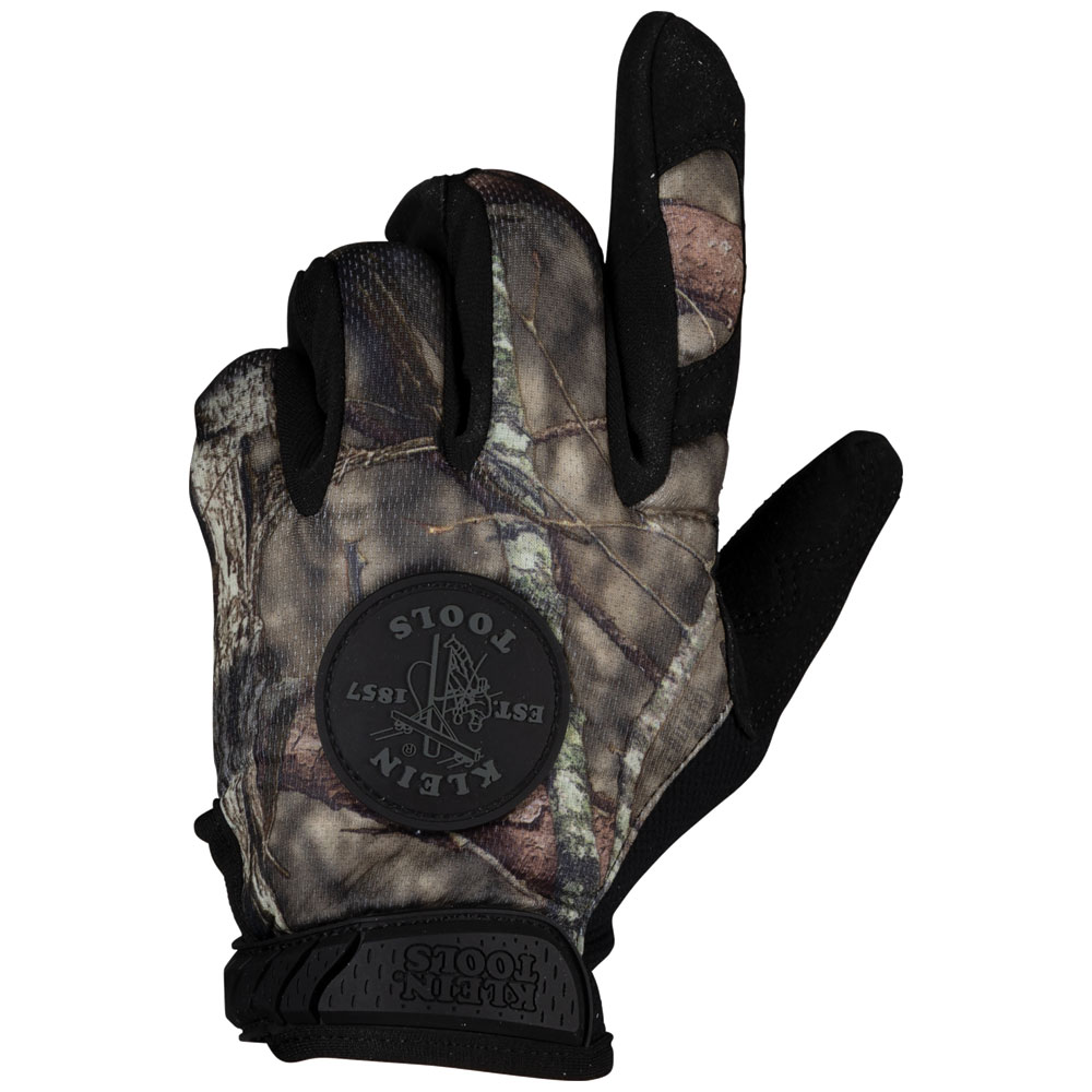 The Klein Tools Journeyman Camouflage Gloves utilize synthetic leather in the palm and fingertips, extending the life of the glove while providing optimum dexterity. Form-fitting TrekDry™ material with Mossy Oak® Break-Up® Infinity™ camouflage helps keep your hands cool, dry and comfortable.