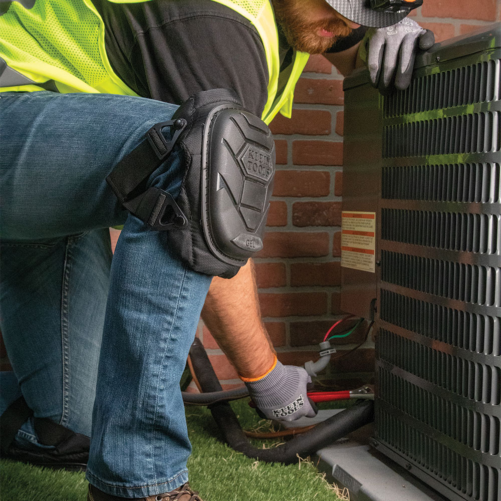 The Semi-Round Stabilizer Knee Pad Knee Pads from Klein Tools are designed for trades that demand ground-level work and meet the rigors of toughest jobsites. The stabilization platform provides balance and stability in stationary positions, while the semi-round shell allows for easy side to side movement. The multi-layer gel padding system is designed to support the knees and to reduce pressure after all-day wear. Quick-fasten buckles and adjustable elastic straps allow for easy on/off.